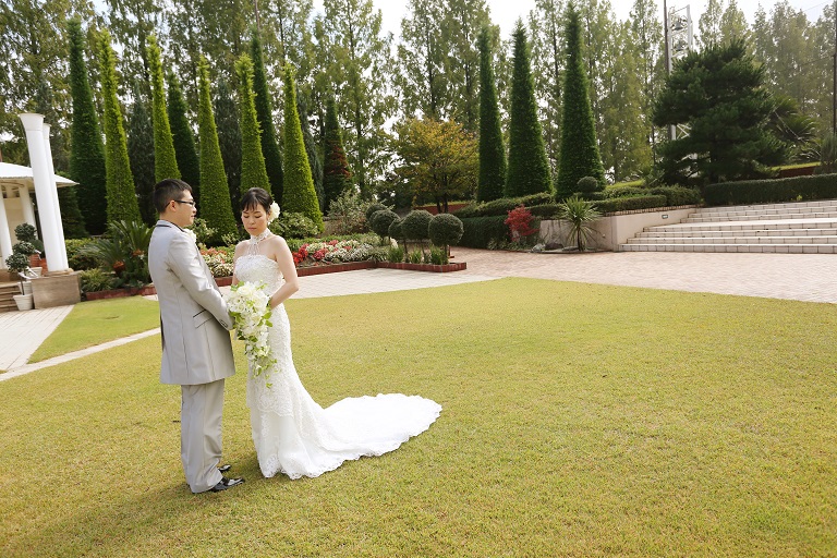 お二人は少し早くお支度を整えガーデンで記念の写真撮影を行いました