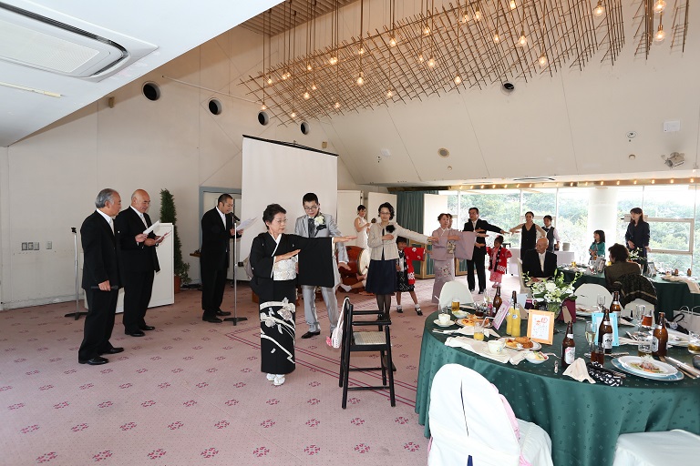 和やかな雰囲気の会場でゲスト皆様とお二人で行われた演奏と歌と踊りはご両家の輪を感じました