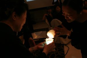 皆様へキャンドルが配られキャンドルの炎が隣から頂き隣へ渡す
